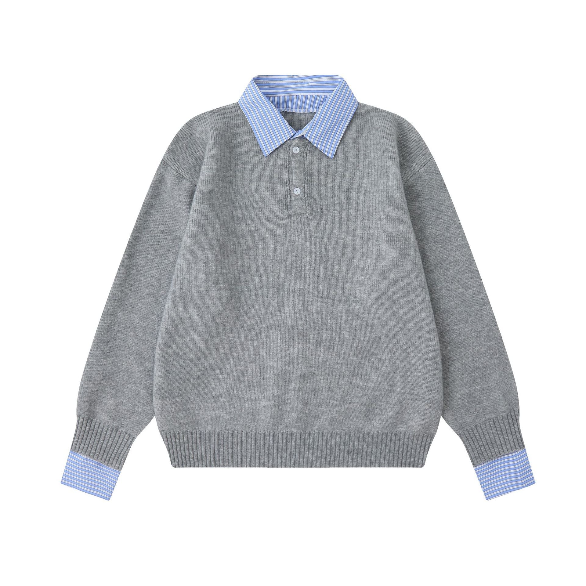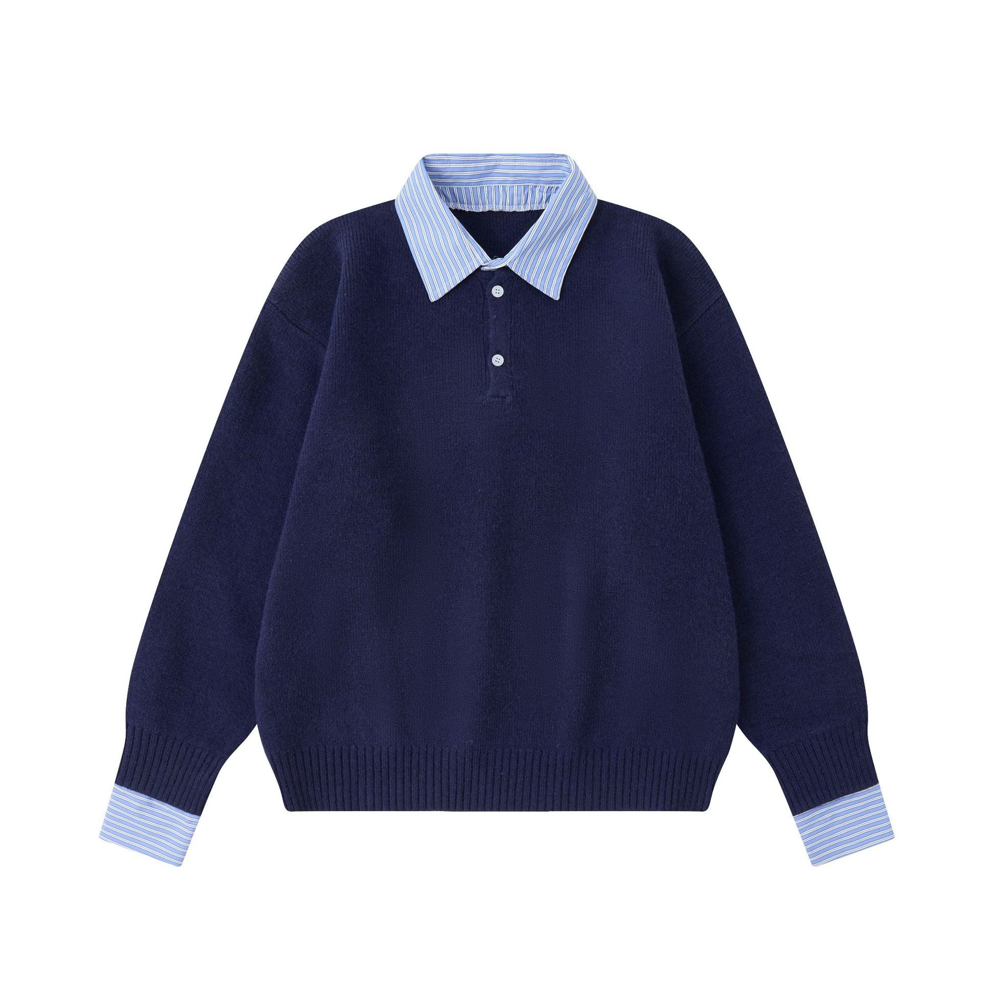 Fake two-piece Shirt collar Knitted sweater Slim fit Sweater