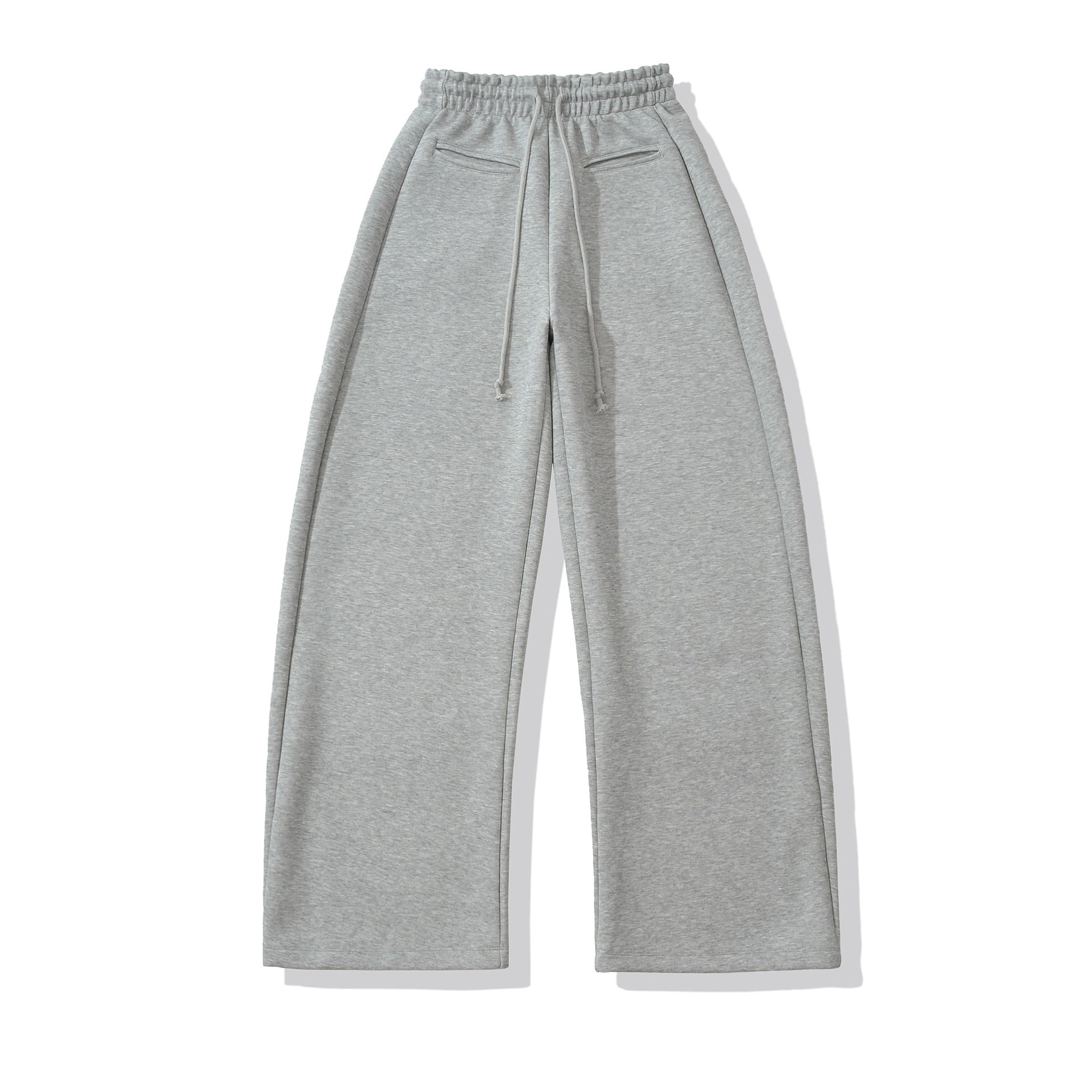 Minimally designed drawstring elastic waistband loose wide leg curved knife pants casual pants