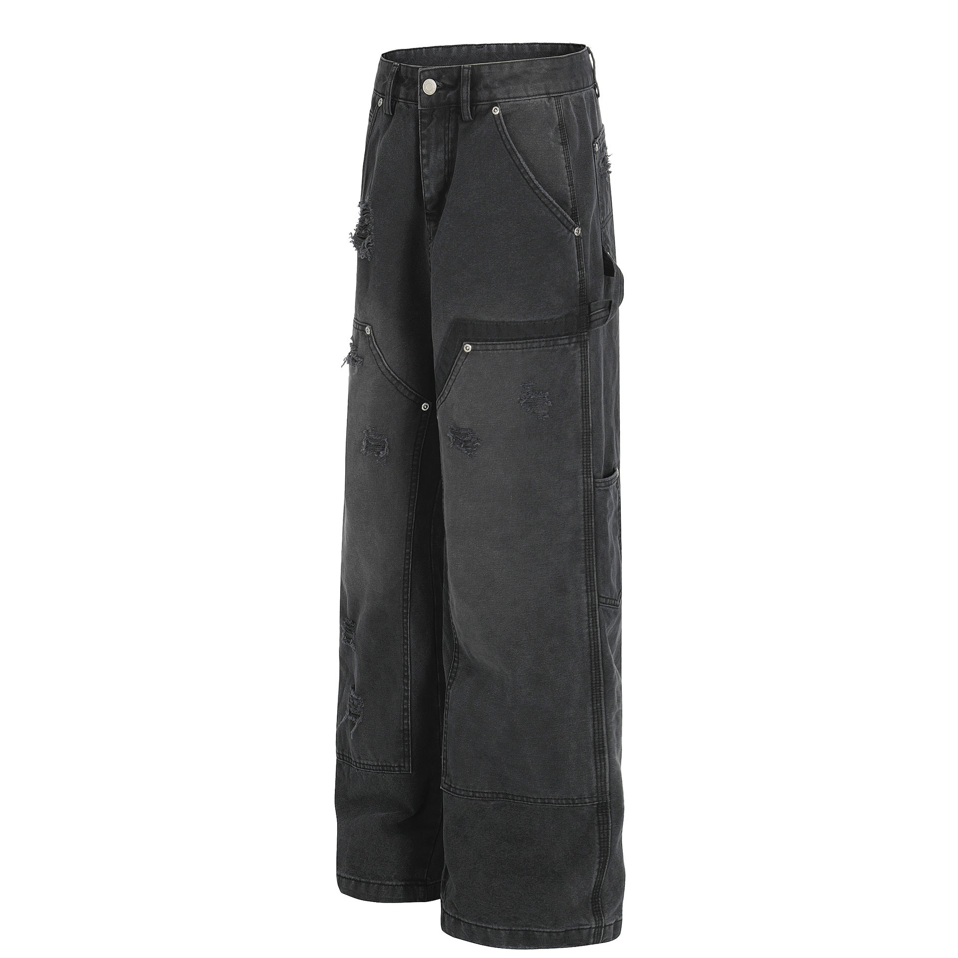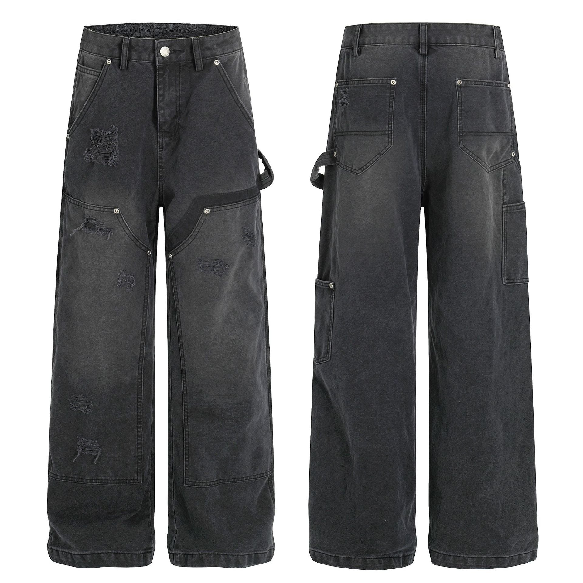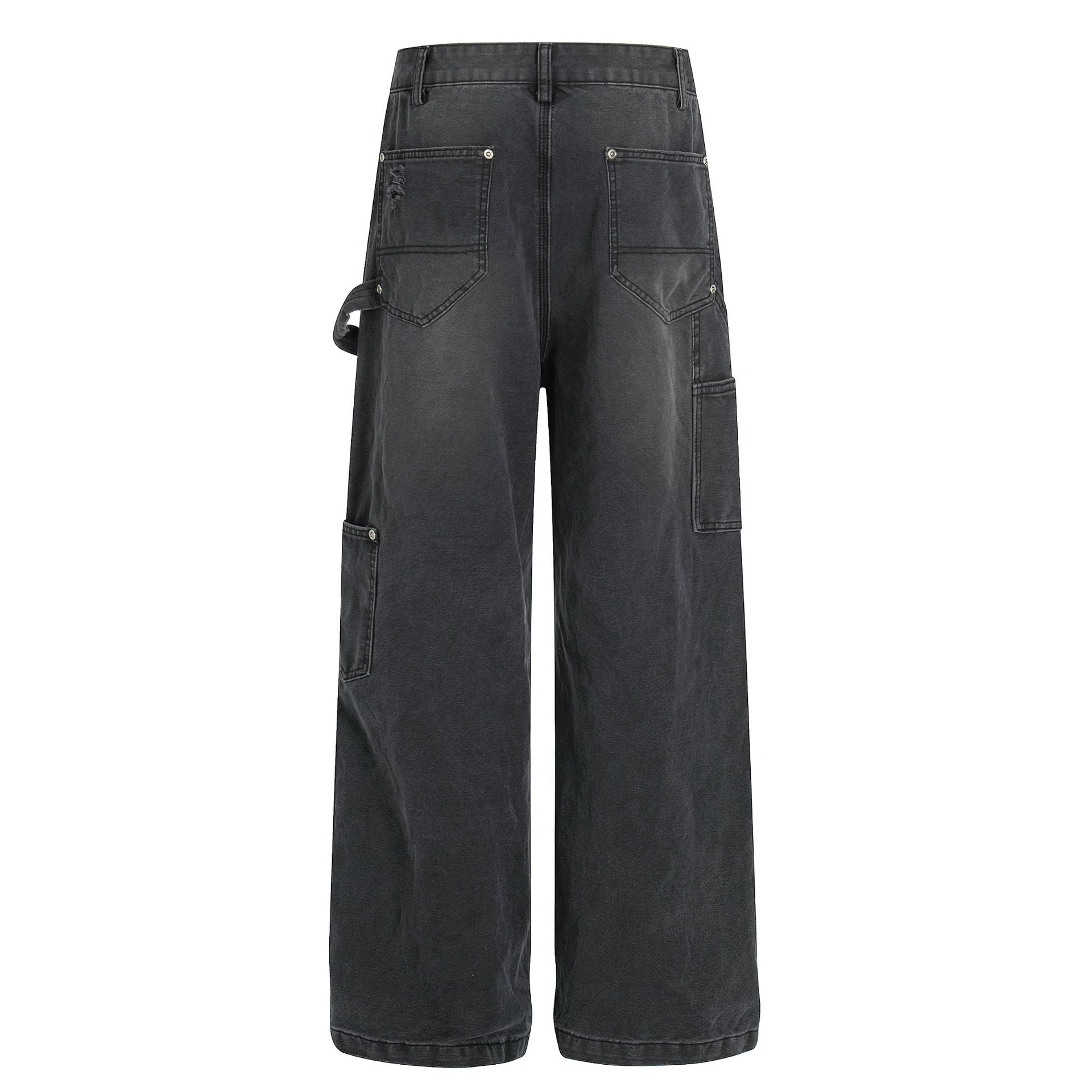 Street Style Unisex High-End Vintage Washed Black Design Loose Casual Denim Pants
